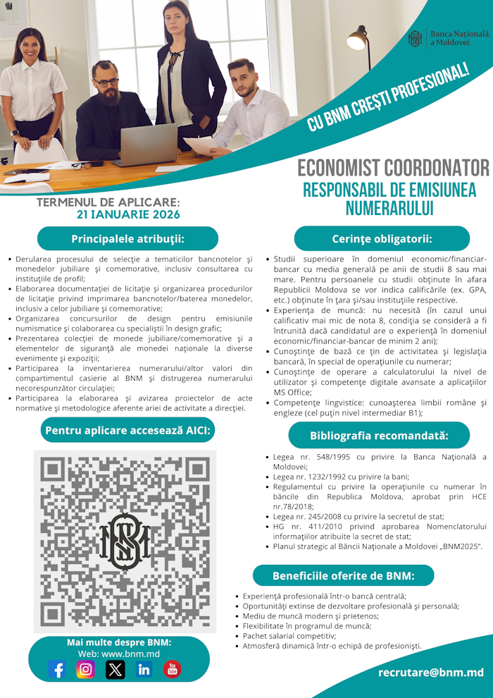 Economist coordonator, responsabil de realizarea politicii macroprudențiale