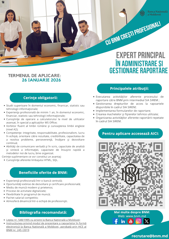 Expert principal în administrare și gestionare raportare